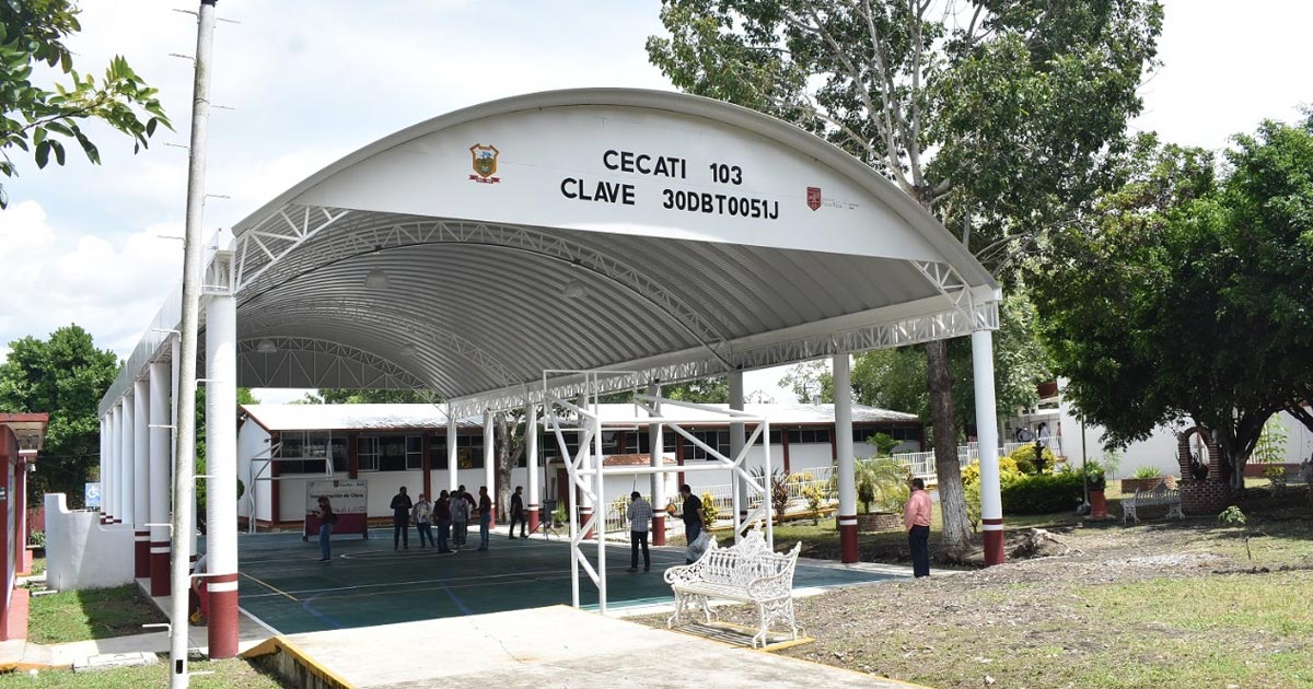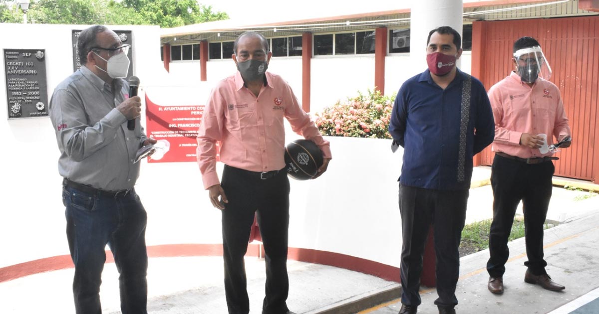 Más tarde se entregó la Construcción de Techumbre Autosoportante en la cancha de Educación Física, e Impermeabilización que se realizó en la Escuela Primaria Raúl Gibb Quintero de la Colonia 12 de Octubre, con una inversión de $ Un millón 297 mil 856.19 para 80 estudiantes beneficiados. También se entregó la Construcción de Techumbre autosoportante en el Centro de Capacitación para el Trabajo Industrial (CECATI) 103, de la colonia Revolución con una inversión de $ 914 mil 611.75, para 65 beneficiarios.