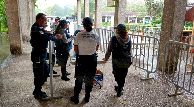 Personal de la Secretaría de Seguridad Pública mantiene la vigilancia en los accesos a la zona arqueológica, reconocida como una de las más importantes de latinoamerica. Quedando restringido el acceso para ciertos dispositivos electrónicos, accesorios y alimentos.
