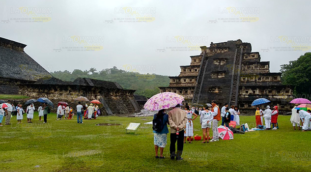 Papantla, Ver.- Desde las primeras horas de este miércoles, decenas de turistas arribaron a la zona arqueológica El Tajín, donde recorrieron los diversos edificios prehispánicos para recargar energías, según la creencia popular.
