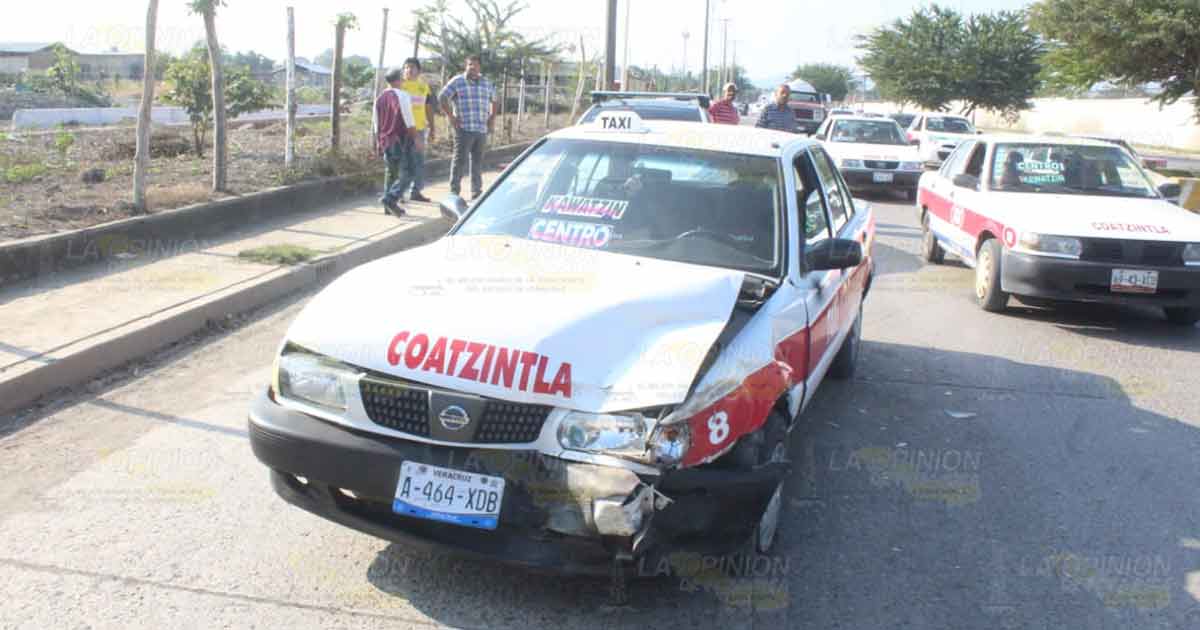 Los hechos ocurrieron antes de las 10 de la mañana a escasos metros de la estación de bomberos donde el taxi marcado con número 8 el municipio de Coatzintla se impactó en un costado de la camioneta Chevrolet Silverado propiedad de la empresa Solintegra que presta sus servicios a petróleos mexicanos y era conducida por un petrolero y debido a su imprudencia ocasionó el choque.