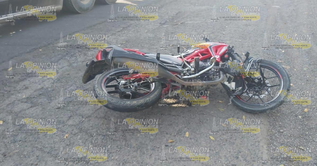 Álamo, Ver.- Un fuerte accidente se presentó sobre la carretera Álamo-Tihuatlán, a la altura del módulo que conduce hacia la localidad del Concepción, justo a la altura de la desviación que conduce hacia el municipio de Castillo de Teayo, en donde el conductor de una pick-up chocó contra una motocicleta.