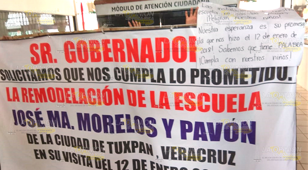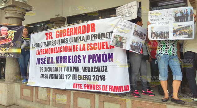 Tuxpan, Ver.- Padres de Familia y docentes de la escuela primaria José María Morelos y Pavón están solicitando la intervención del gobierno municipal para que interceda a nivel estatal con el Gobernador Miguel Ángel Yunes Linares y en Espacios Educativos, para que se cumpla con la remodelación total del inmueble.