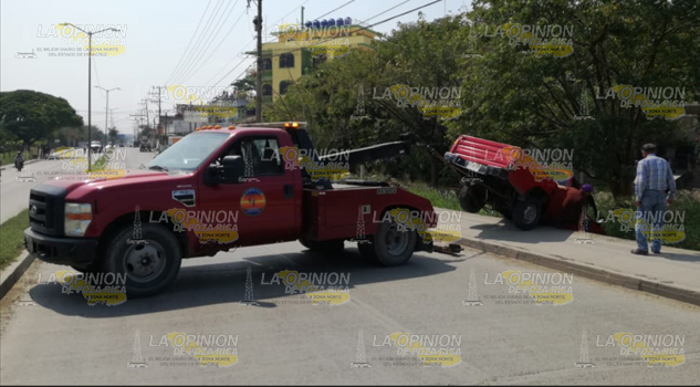 Tuxpan.- Jovencito que manejaba una camioneta a exceso de velocidad terminó lesionado al sufrir un aparatoso accidente, paramédicos lo trasladaron al Hospital Civil para su atención médica, mientras que el perito de Tránsito remitió la unidad al corralón.