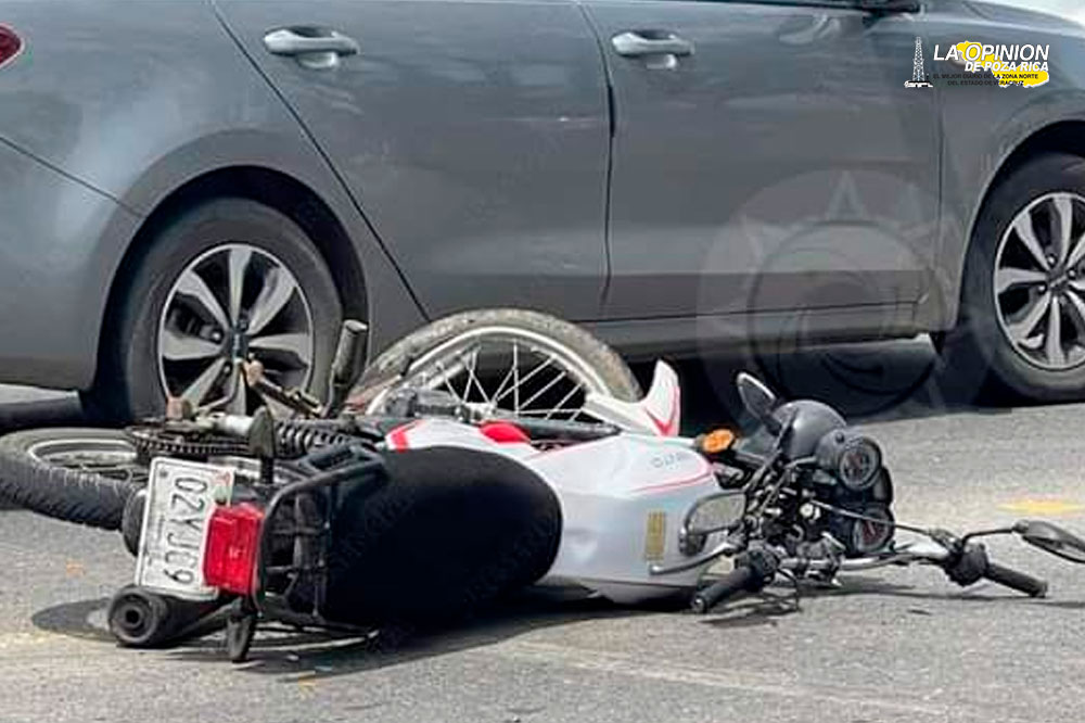 Lo que provocó que la moticleta marca Vento, color blanco, con placas 02-YJC-9 del estado de Veracruz que manejaba Jacinto Astacio Rodrigo, de 19 años, se impactará en su costado, cuando transitaba en la misma dirección.