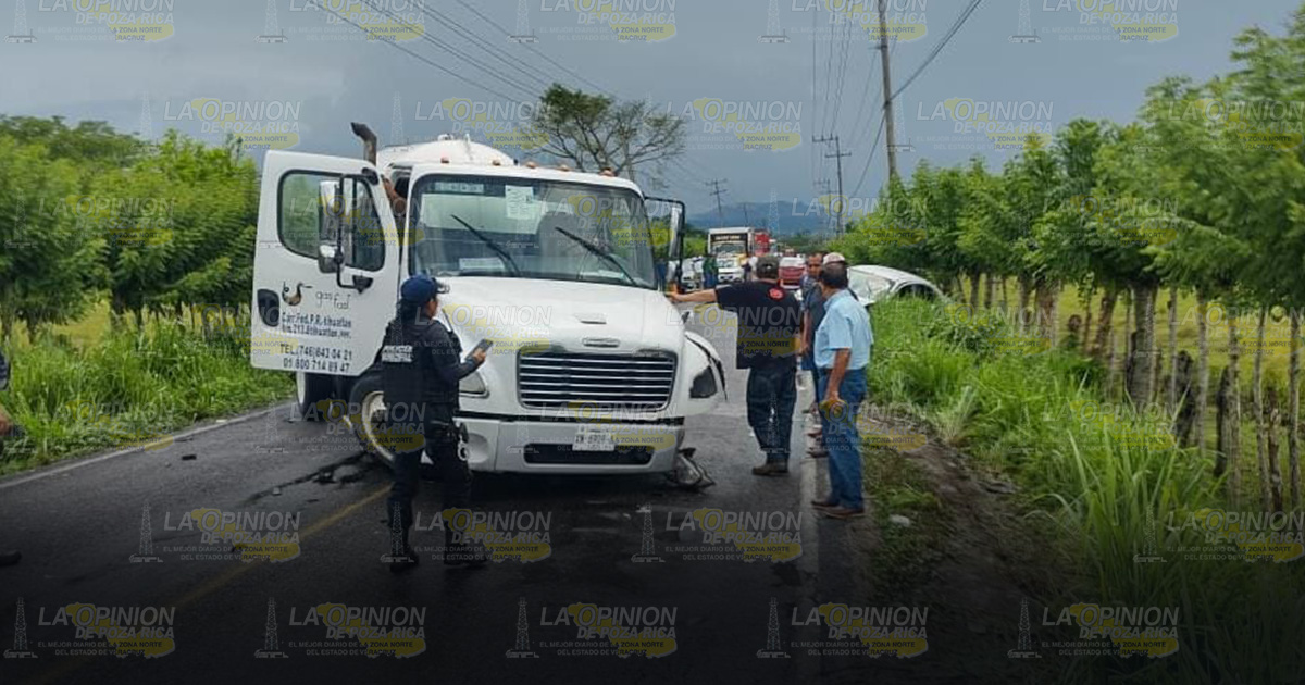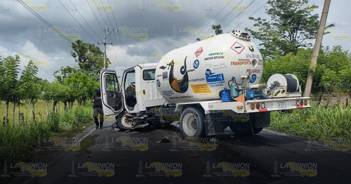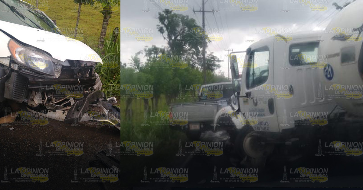 Espinal, Ver. – Daños materiales por varios miles de pesos fue el saldo de un accidente registrado la tarde de este día sobre la carretera Espinal-Coyutla, donde participaron una pipa de gas, una camioneta y un automóvil particular.
