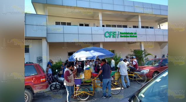 Álamo, Ver.- Inconformes porque la CFE los dejó sin energía eléctrica, y eso además de afectarlos en el servicio de luz también los perjudica porque se quedaron sin fluido para bombear agua a sus domicilios, por lo menos medio centenar de habitantes de la colonia rural Unidad Socialista mantienen un plantón frente a las oficinas comerciales de la empresa federal.