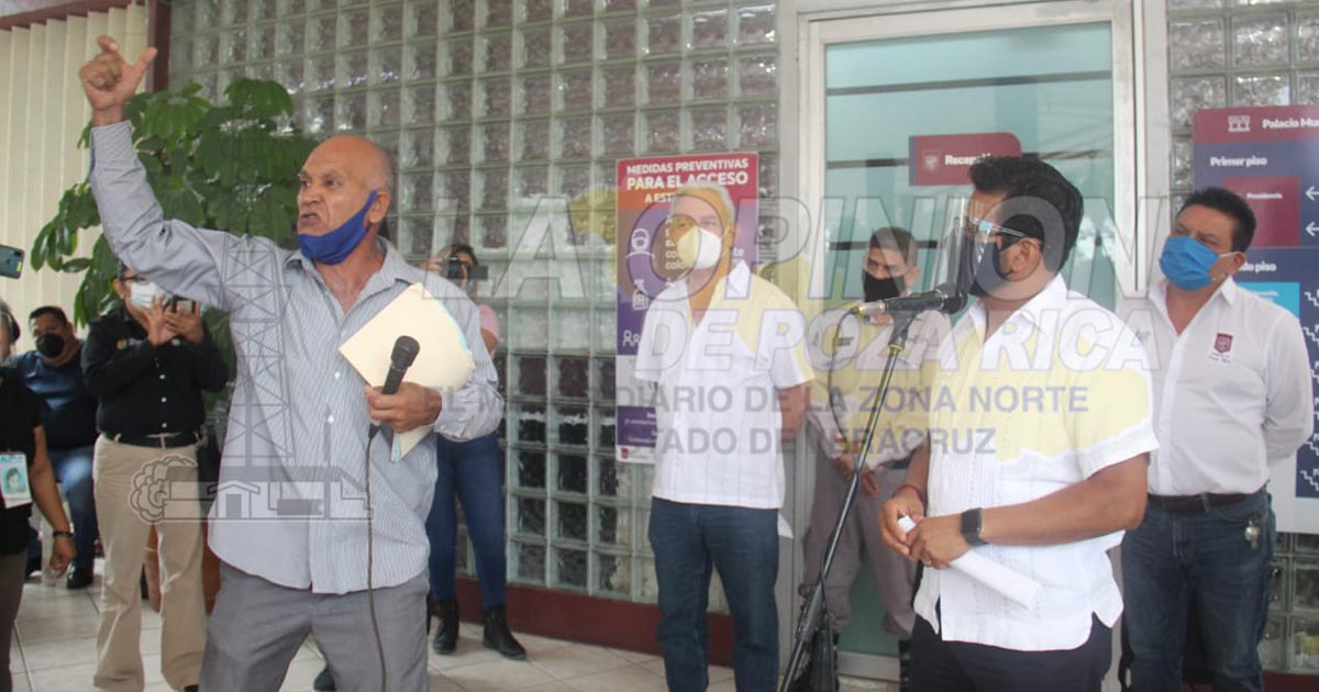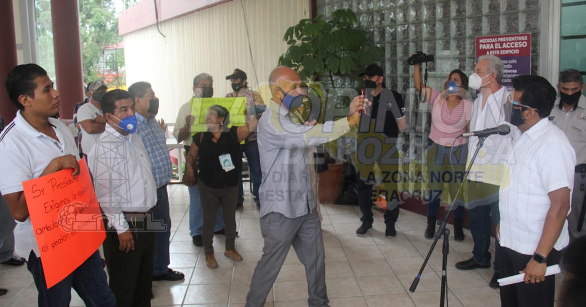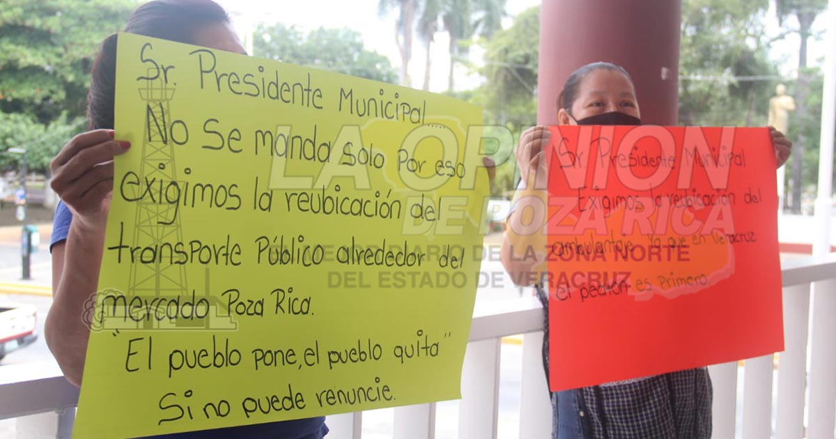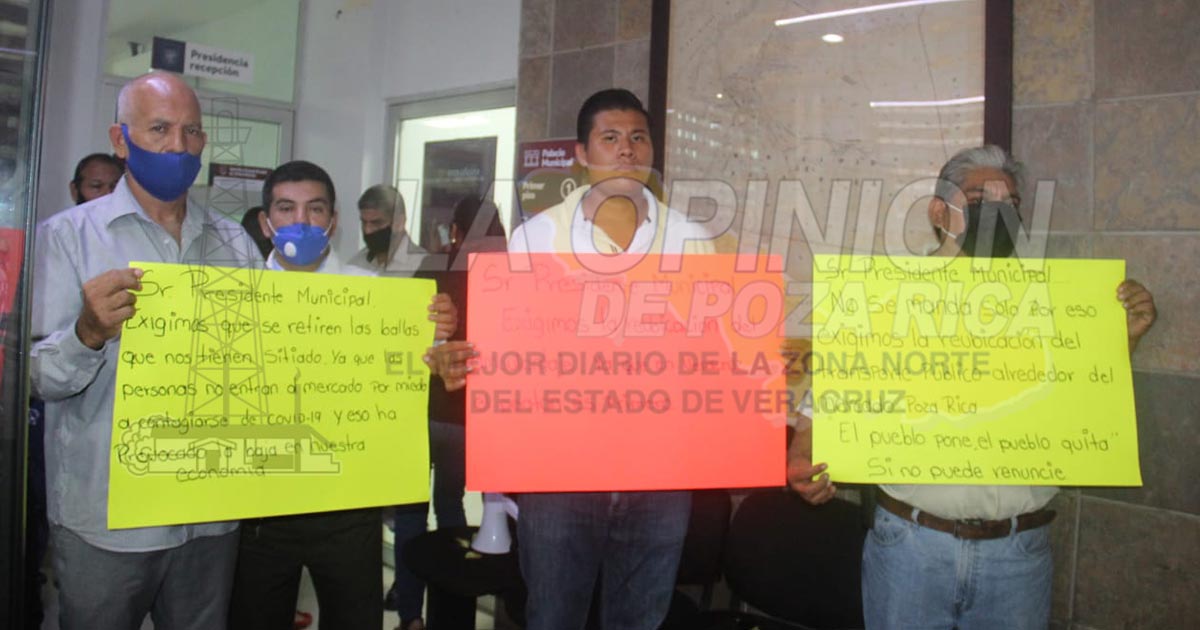 Poza Rica, Ver.- Un grupo de locatarios del mercado Poza Rica, así como taxistas, realizaron una manifestación la tarde de este viernes en palacio municipal.