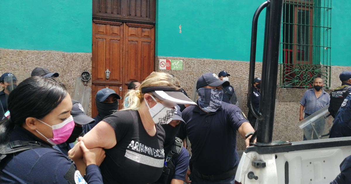 Fue cerca de las 12:40 de este lunes que a bordo de patrullas de la Policía Estatal, los elementos detuvieron a quienes se manifestaban, hecho que confirmó la propia SSP.