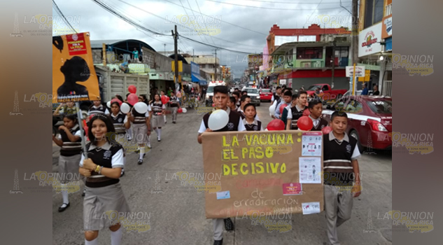 El 34 aniversario de la lucha contra la poliomielitis se conmemoró esta mañana aquí con un desfile alusivo y un acto cívico en la explanada municipal, con la participación de planteles educativos de secundaria y bachillerato, Cruz Roja, Centro de Salud y DIF Municipal, entre otras instituciones.