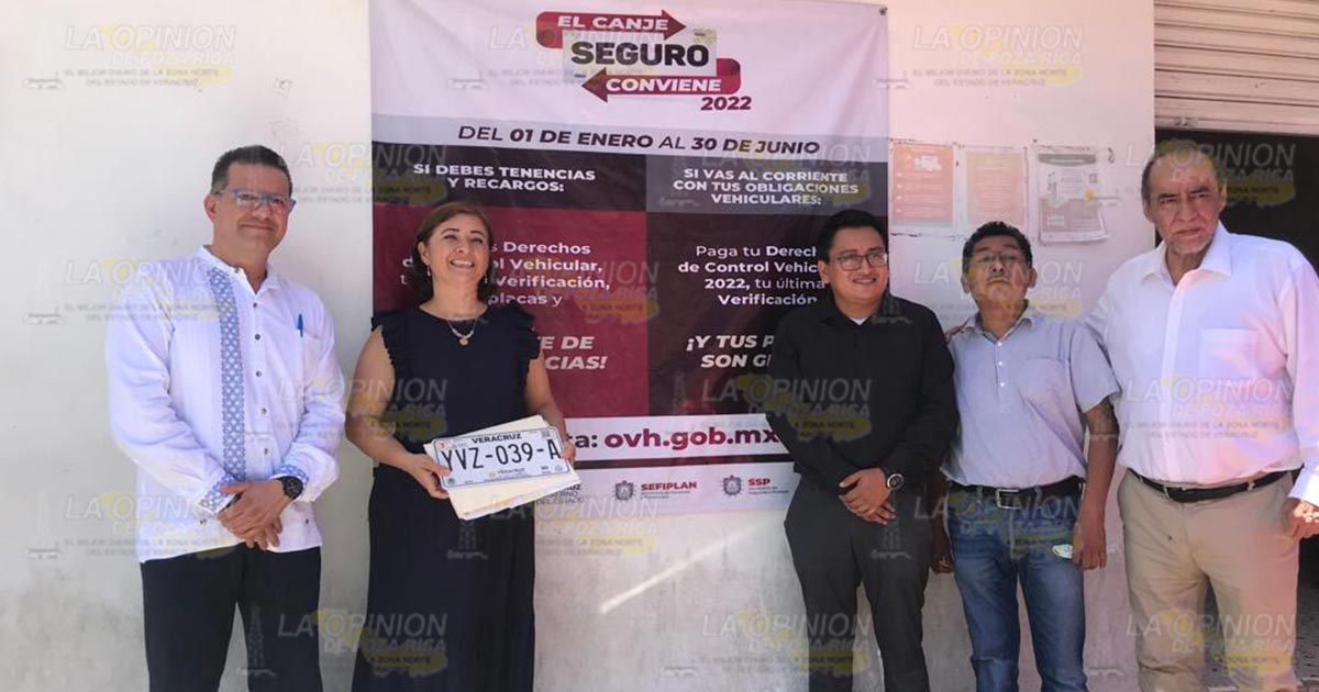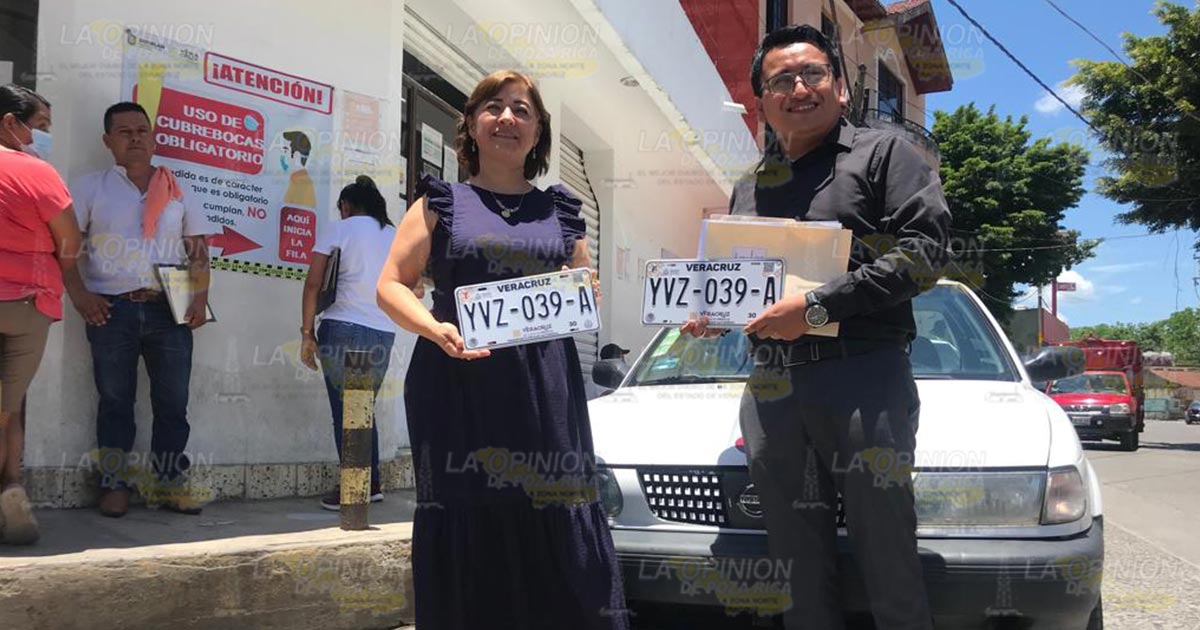 Álamo, Ver.- El ayuntamiento de Álamo recibió las primeras placas para el parque vehicular, que se conforma de 99 unidades, con lo que se convierte en el primero de la zona norte en cumplir con el trámite de reemplacamiento.