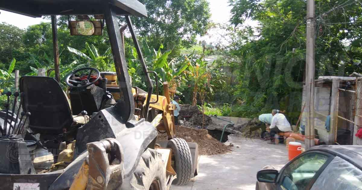El sitio exacto de la fuga de agua es al final de la calle Mango, del Barrio de Xico, justo a orillas de un arroyo de aguas negras, donde ayer por la mañana, una cuadrilla de trabajadores rompió el concreto de la calle, hicieron la excavación para buscar el tubo roto, pero por error humano rompieron el tubo del drenaje, lo que generó un problema secundario.