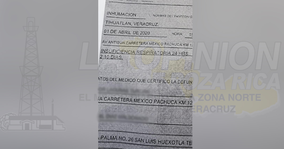 Tihuatlán, Ver. – Zozobra y temor de contagio se ha presentado en todo Tihuatlán a causa de un deceso por posibles COVID-19, esto debido a que familiares del finado presentarán un certificado de defunción en donde se muestra que la muerte fue provocada por insuficiencia respiratoria, situación que ha alertado a la población.