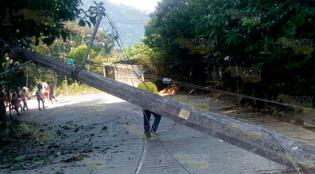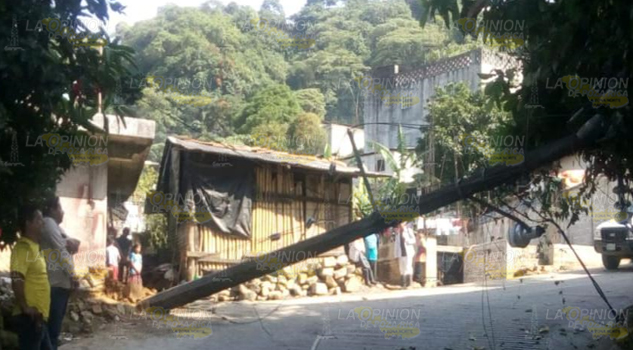 Un poste de concreto propiedad de la Comisión Federal de Electricidad (CFE), se cayó y terminó atravesado sobre la carretera que comunica a la cabecera municipal de Filomeno Mata a la comunidad de Jopala, Puebla.