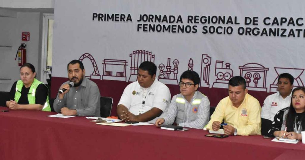 Para esta capacitación, se invitó a 30 municipios de las regiones mencionadas y fue impartida por personal de la Secretaría de Protección Civil del Gobierno del Estado, para que las autoridades en materia de Protección Civil de los municipios correspondientes a las regiones citadas, estén debidamente preparados y elaboren sus planes respectivos, para aquellos fenómenos socio organizativos, que de acuerdo con la ley se define como aquellos que se generan con motivo de errores humanos o por acciones premeditadas, que se dan en grandes concentraciones o movimientos masivos de población.