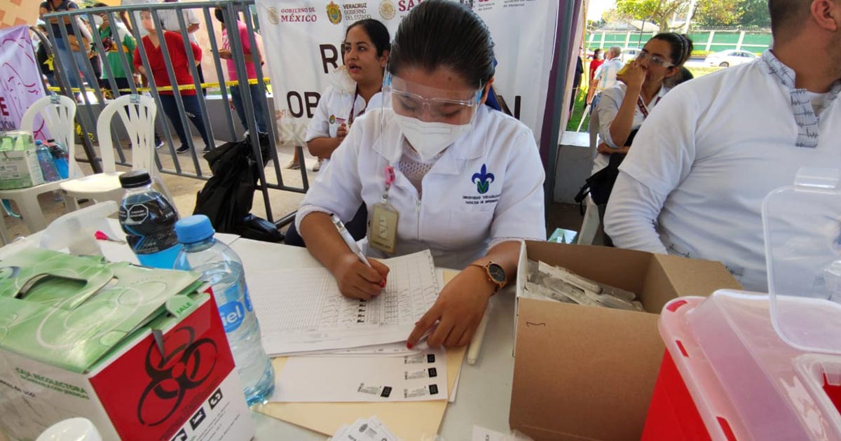 Poza Rica, Ver.- Estudiantes y egresados de la Universidad Veracruzana (UV), convocados por las autoridades municipales, participaron en el operativo para la vacunación de la población de adultos mayores de 60 años, que del 22 al 28 de marzo desarrollaron en esta región la Secretaría de Salud del Gobierno del Estado y la Secretaría del Bienestar del Gobierno Federal.