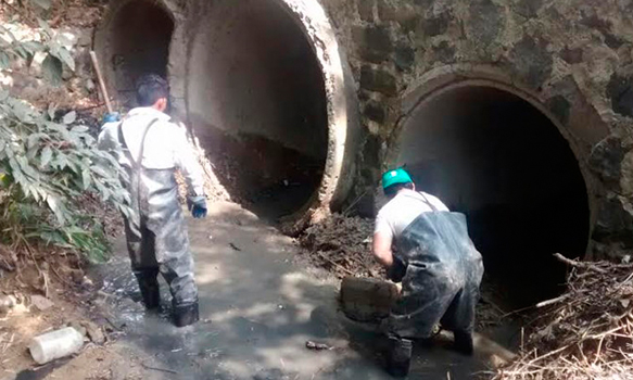 Desazolvan parte del Arroyo del Maíz a la altura de la secundaria México, ya que los ductos están tapados por…