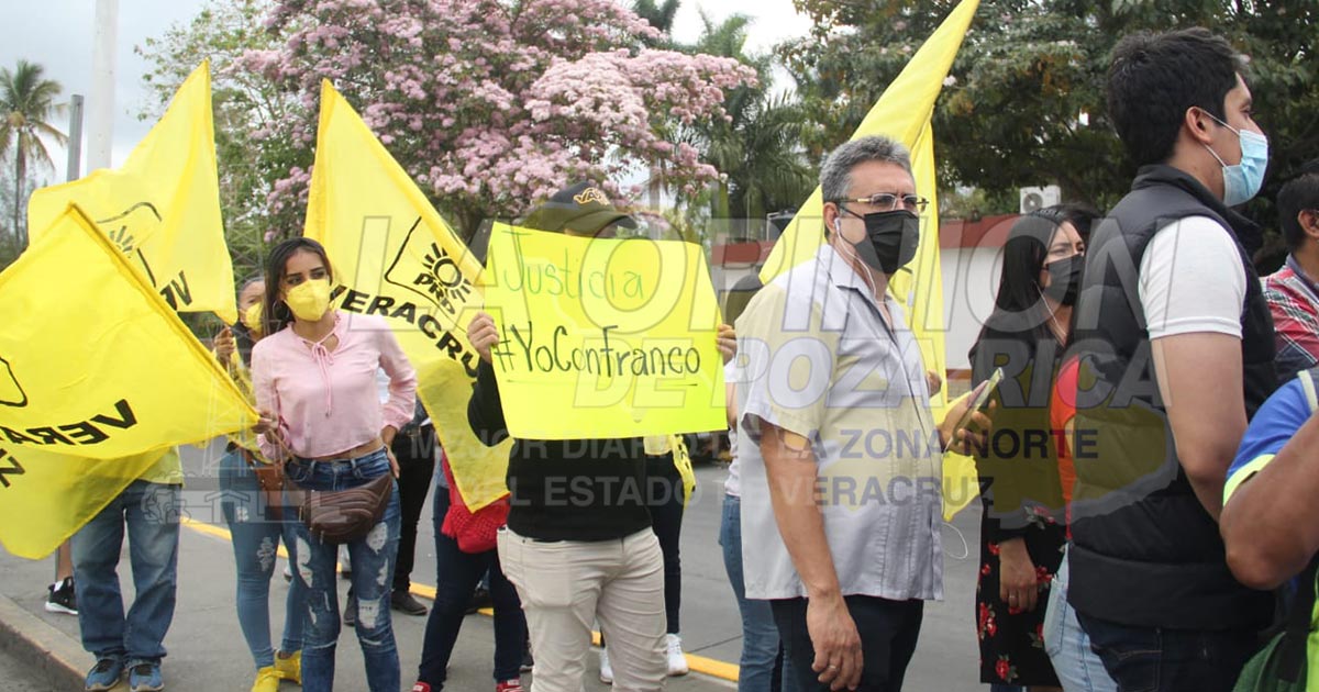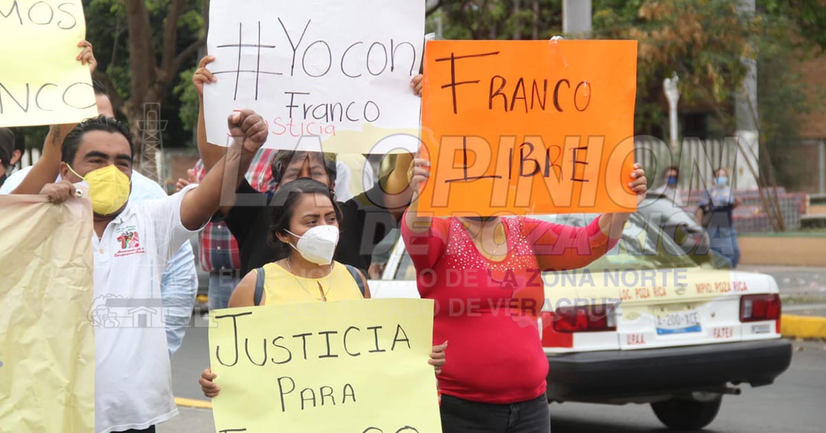 Poza Rica, Ver.- Militantes partidistas del Partido de la Revolución Democrática (PRD) se manifestaron está mañana sobre el boulevard Ruiz Cortines, con el lema #FuerzaFRANCO el pueblo se levanta!, ciudadanos de Poza Rica, se manifestaron para exigir la libertad de Rogelio Franco Castán, que fue detenido el fin de semana en el municipio vecino de Tuxpan por presuntamente acusado por violencia familiar.