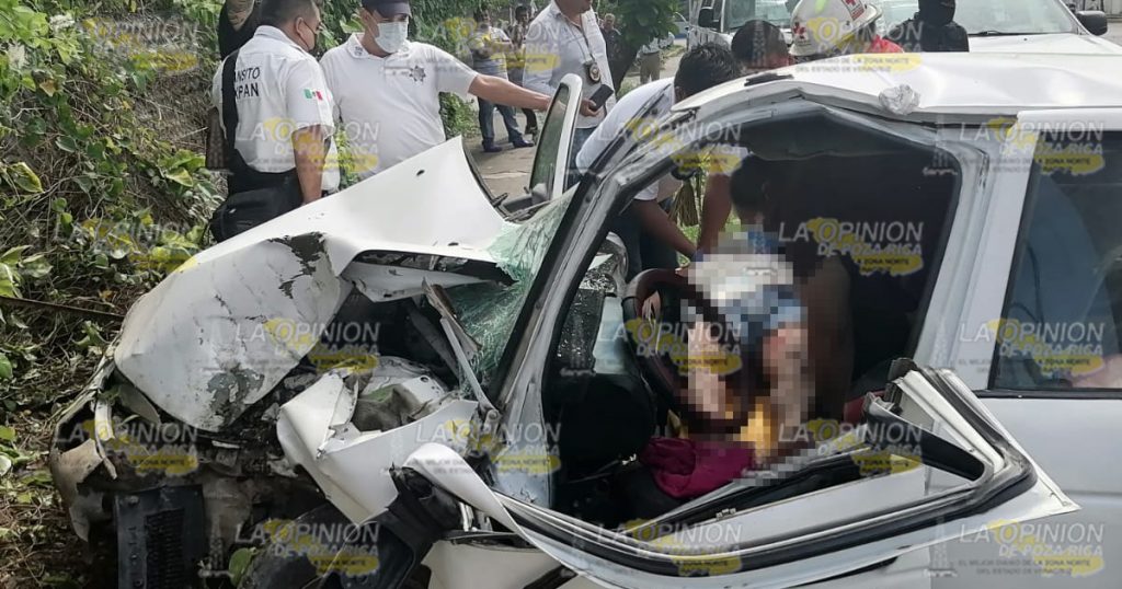 Tuxpan, Ver. – Joven que manejaba un automóvil a exceso de velocidad terminó estrellado en la pared de un domicilio de la colonia Adolfo Ruiz Cortines, de esta localidad y quedó gravemente herido; rescatistas tuvieron que liberarlo de entre los hierros retorcidos del vehículo para trasladarlo al Hospital Civil Emilio Alcázar.