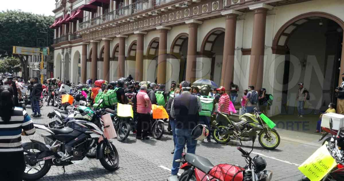 Xalapa, Ver.- Al protestar en Plaza Lerdo, decenas de motorrepartidores exigieron al Secretario de Salud, Roberto Ramos Alor, dar la cara por la negligencia de hospitales en Xalapa y Coatepec para admitir a Lennin Melgarejo, muerto tras sufrir un accidente en Rébsamen.