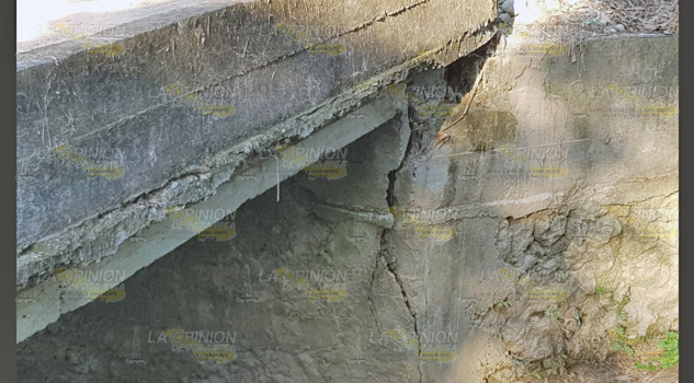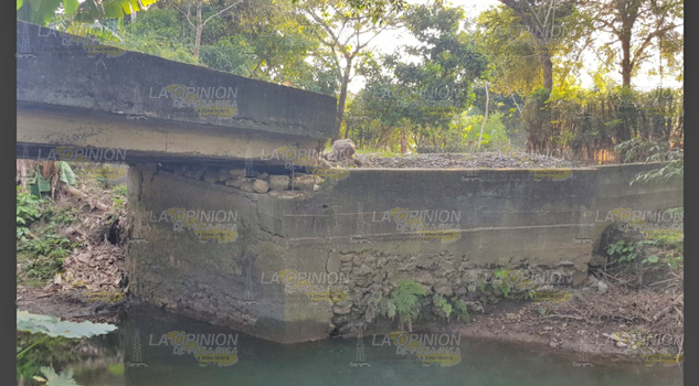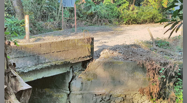 CAZONES DE HERRERA, VER.- El puente que comunica a Plan de Limón con Caristay, Papantla, está a punto de colapsar debido a que con el paso de maquinaria pesada las bases colapsaron, lamentaron habitantes de ese lugar.