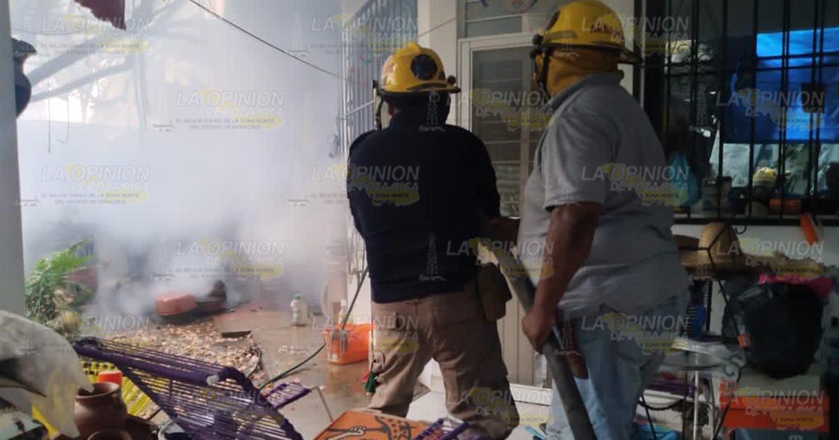 Álamo, Ver.- Tremendo susto se llevó una familia de la zona centro, esto luego de que la quema de basura al interior de su hogar se saliera de control, provocando el temor y zozobra de los vecinos, ya que se corría el riesgo de una explosión en este lugar, debido a la presencia de tanques de gas LP.