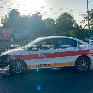El brutal impacto envió a la Nissan fuera de la carpeta asfáltica, dejándola con parte de la dirección del lado izquierdo destrozada (salpicadera, neumático, fascia y cofre dañados), mientras que el taxi mostró daños en la parte frontal.