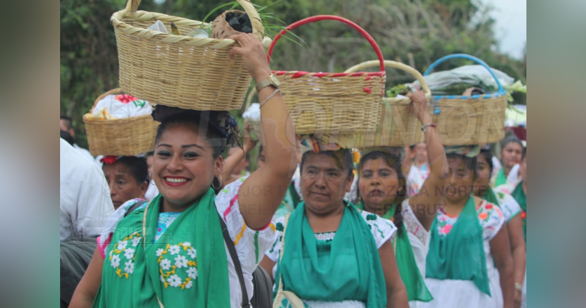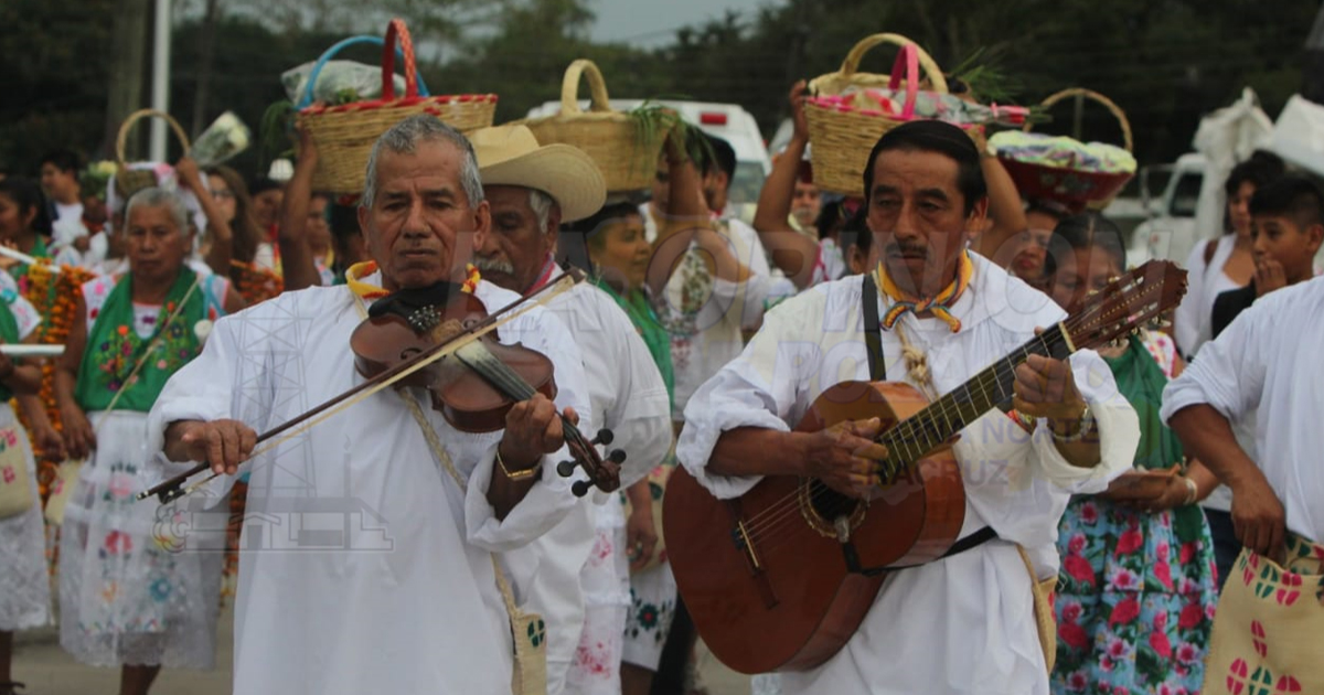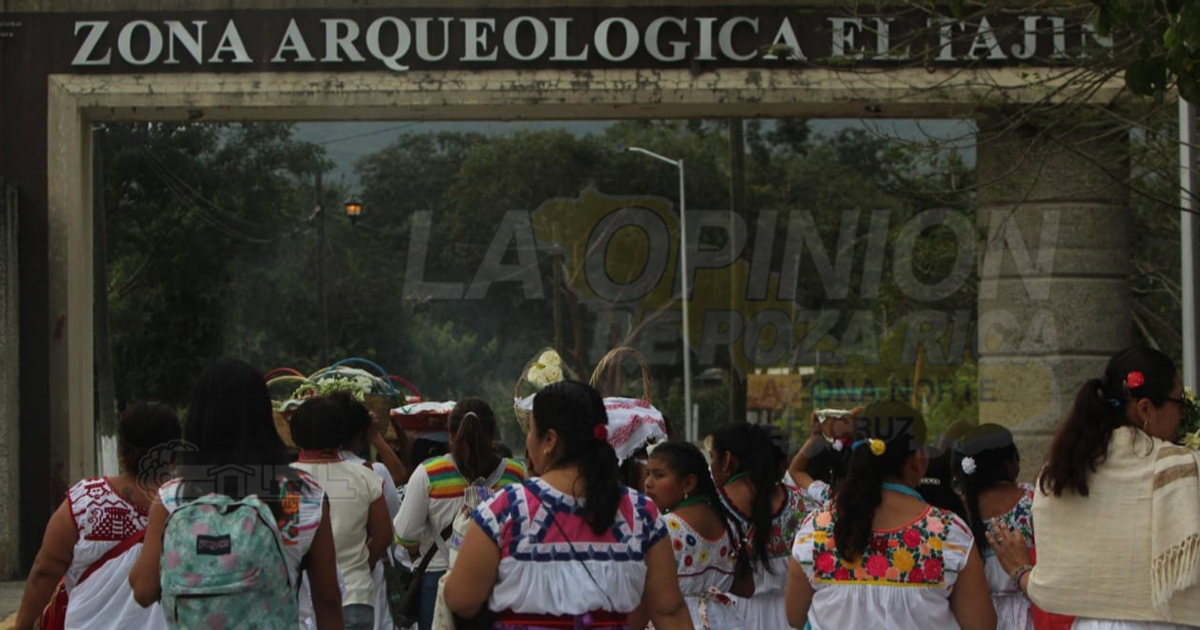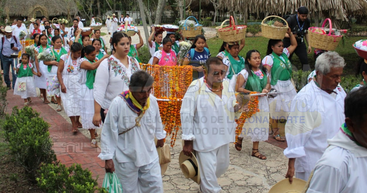 La procesión inició en el Parque Temático “Takilsuktutl”, donde los abuelos caminaron hasta la Zona de Monumentos Arqueológicos El Tajín, y en sus manos y cabezas llevaban ricas viandas de ofrendas.