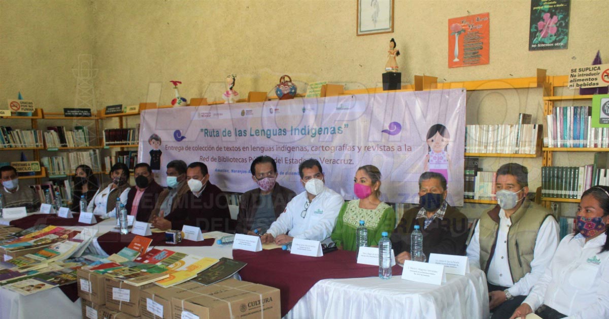 Naranjos, Ver. – Víctor Román Jiménez Rodríguez, alcalde del Municipio de Naranjos-Amatlán, encabezó la recepción de un importante lote de libros en lenguas originarias en una ceremonia realizada en las instalaciones de la biblioteca “Benito Juárez García” de la comunidad de Amatlán, espacio en que los volúmenes fueron donados y quedarán bajo su responsabilidad para su conservación y consulta.
