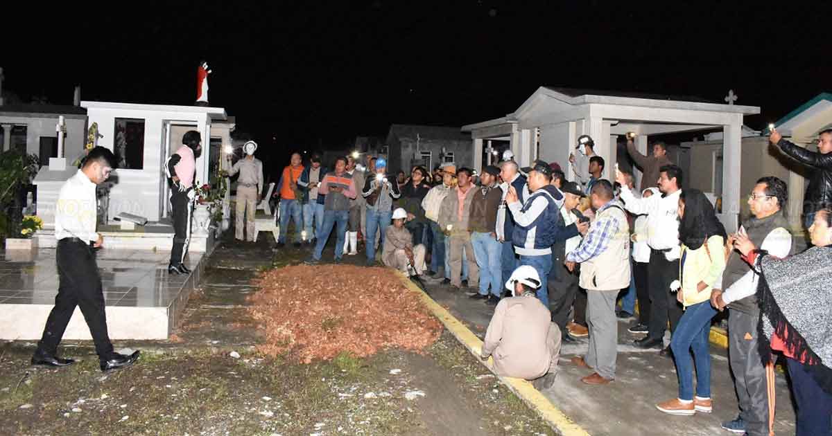 Poza Rica, Ver.- Con éxito se desarrolló la puesta en escena Crónicas de Muerte, llevada a cabo por el gobierno de Poza Rica en el marco de la Celebración del Día de Muertos, en donde el grupo de Teatro Oro Negro, fue el encargado de realizar el recorrido por los pasillos del Cementerio Municipal de la Santísima Trinidad, recordando fechas y personajes que forman parte de la historia de Poza Rica, así como leyendas urbanas que han trascendido entre la población.