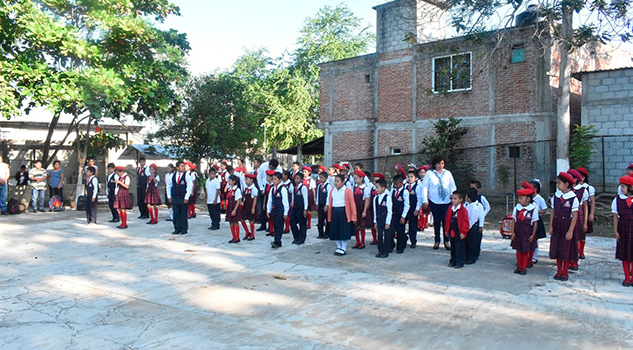 Hilario Pérez Santes, Director del Plantel Educativo, fue el encargado de dar la bienvenida a las autoridades municipales y a los padres de familia que acompañaron en la realización de los honores a los símbolos patrios, y agradeció la presencia del alcalde Francisco Javier Velázquez Vallejo, cuyo gobierno ha destinado esfuerzos para atender las necesidades de las escuelas como la que representa, la cual ha recibido útiles escolares, mochilas, además de calzado para los estudiantes; señaló que el plantel contaba con 9 becas escolares, más al día de hoy la cantidad es de 17, y la semana pasada se les entregó un botiquín escolar, por lo que conminó a las autoridades municipales, seguir adelante con estos programas que se realizan con mucho esfuerzo para atender las necesidades de las escuelas.