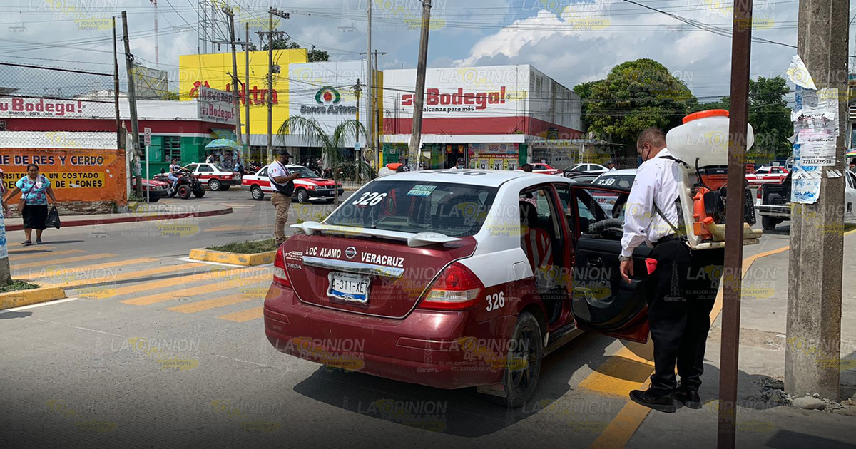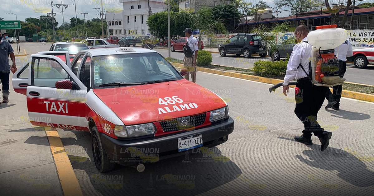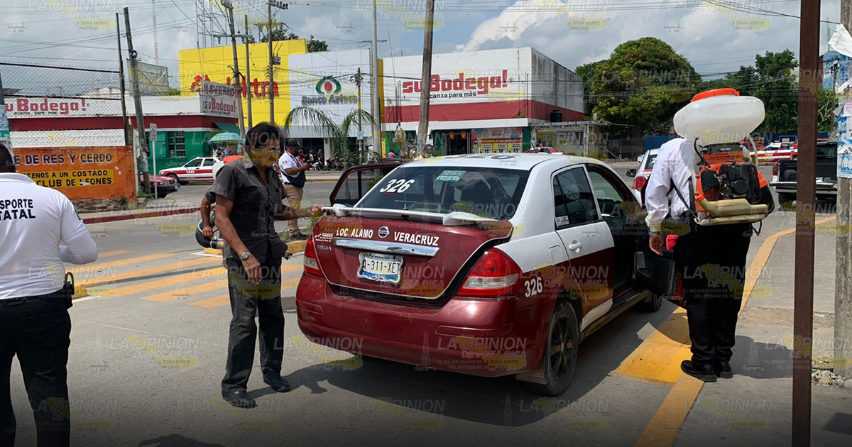 Durante la tarde de este miércoles se llevó a cabo la sanitización de por lo menos 150 unidades, tanto taxis como algunos autobuses de la ruta Álamo-Tuxpan, además se hizo entrega de cubre bocas en las inmediaciones del bulevar Quintana Roo a la altura del colotero, tanto a los conductores como a los mismos peatones.