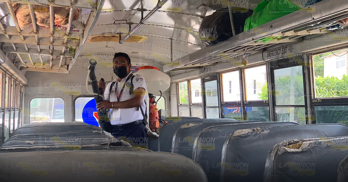 Álamo, Ver. – Ante el incremento de casos positivos que se han presentado en el municipio en cuanto al contagio de Covid-19 así como defunciones, sobre todo de la población adulta; que no ha se ha aplicado ninguna vacuna, autoridades comisionadas en vialidad se encuentran reforzando las acciones preventivas en las unidades del transporte público local.