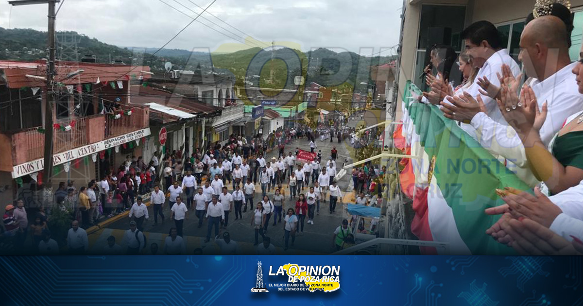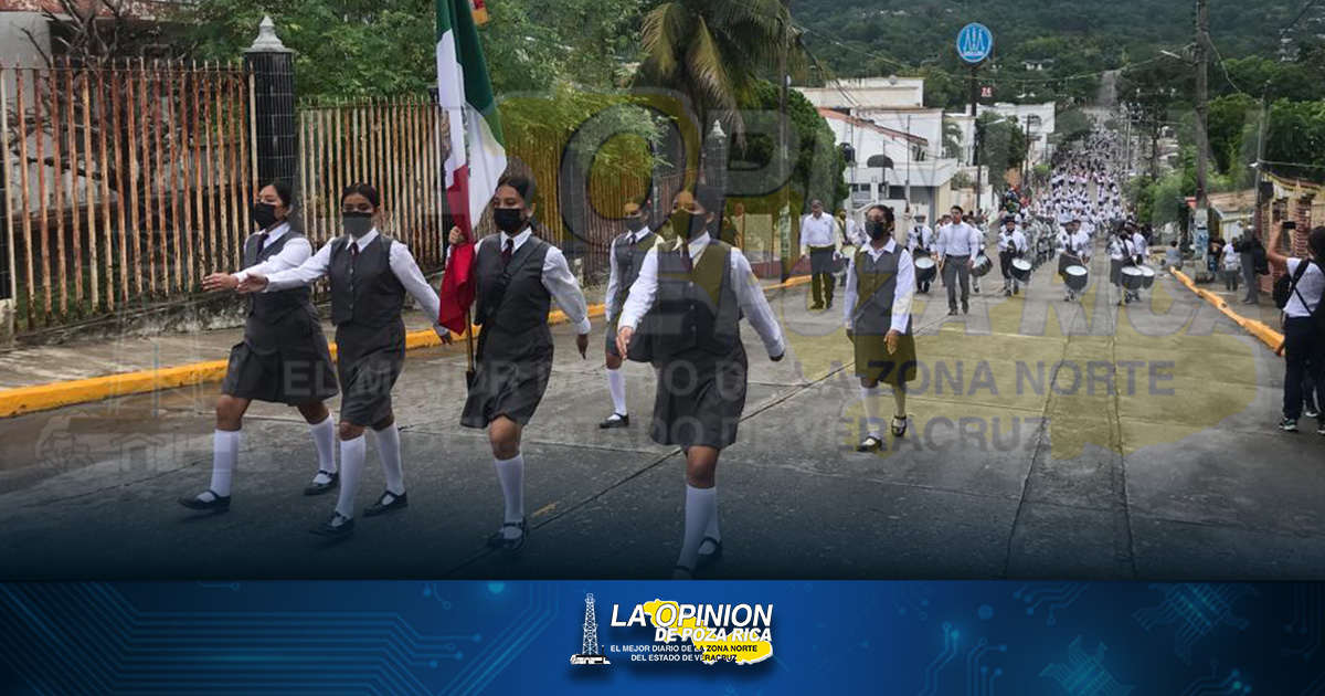 Tihuatlán, Ver.- Luego de que desde marzo de 2020 estaban suspendidas las actividades cívicas masivas por la pandemia de COVID-19, este viernes más de mil alumnos y otros contingentes salieron a marchar por calles de la villa.