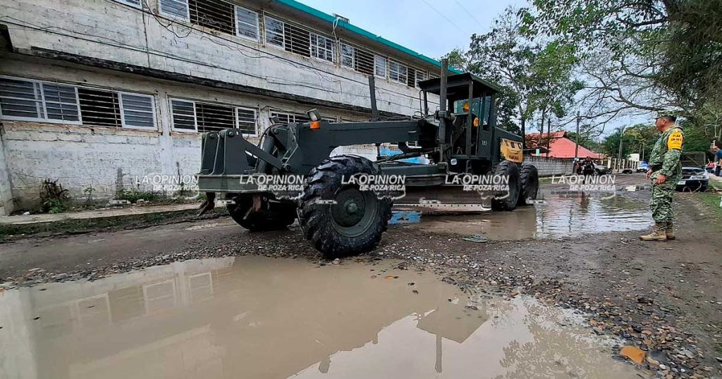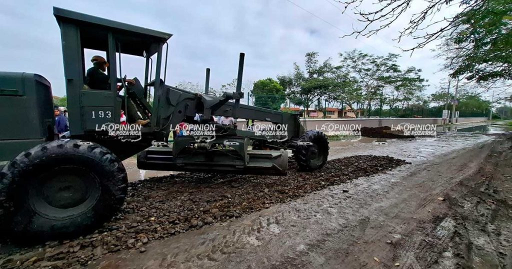 Álamo, Ver.- Con maquinaria y personal del 5º Batallón de Ingenieros de Combate (5BIC) con sede en Cerro Azul, la Secretaría de la Defensa Nacional (Sedena) apoyará al municipio de Álamo en la rehabilitación de 74 kilómetros de caminos rurales, además de casi 2 kilómetros de calles y desazolve en arroyos y en el río Pantepec.