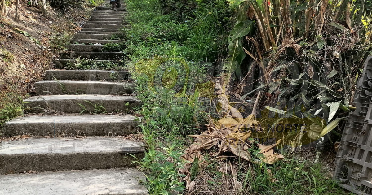 Señalaron el domicilio del señor Daniel Reyes, en cuyo patio, pasa una pequeña zanja que se ha formado para que el agua potable no invada todo su terreno, y luego sale hacia la orilla de la escalinata, por donde diario transitan cientos de personas.