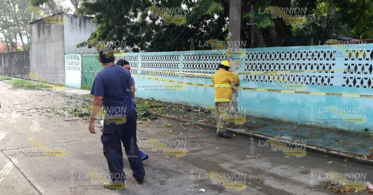 Tuxpan, Ver.- El reporte de un incendio en una escuela de esta ciudad provocó la movilización de cuerpos de seguridad y de emergencia; se trató de un cortocircuito originado por el rozamiento de las ramas de un árbol con los cables de alta tensión.