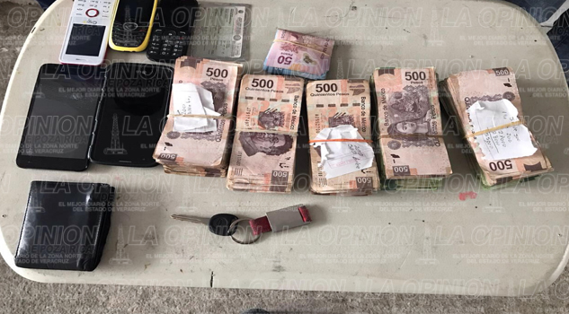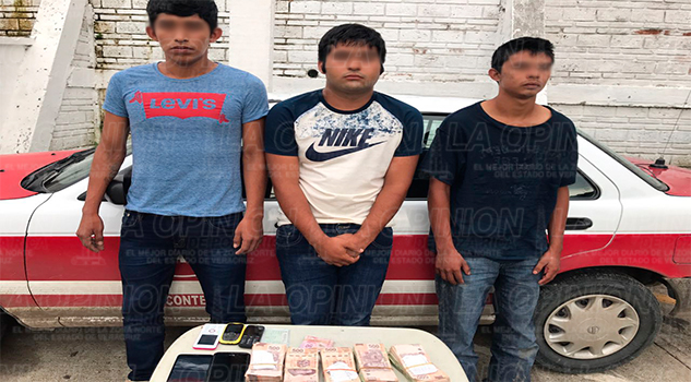 A los detenidos, quienes fueron identificados como Juan Daniel M.F., de 21 años, Carlos Ignacio M.M., de 20 años, y Manuel C.M., todos originarios y vecinos de la comunidad de Ojital Ciruelo del municipio de Álamo-Temapache, se les aseguró un arma de fuego calibre .22, 29 cartuchos calibre 9mm., así como 400 mil pesos en efectivo, celulares y equipo de radiocomunicación.