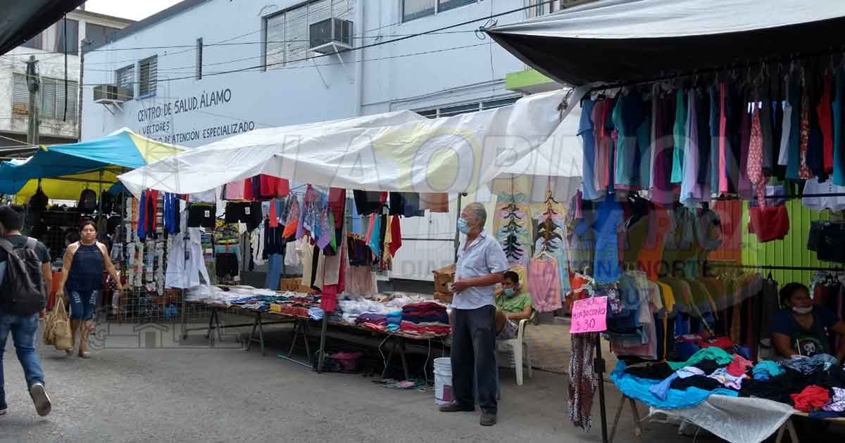 Álamo, Ver.- Con desacatos de la mayoría de los comerciantes a las recomendaciones sanitarias emitidas ante el riesgo del coronavirus, el tianguis dominical se realizó por primera vez en muchos años sólo con la participación de vendedores locales, y con una asistencia de consumidores que no se esperaba tan nutrida.