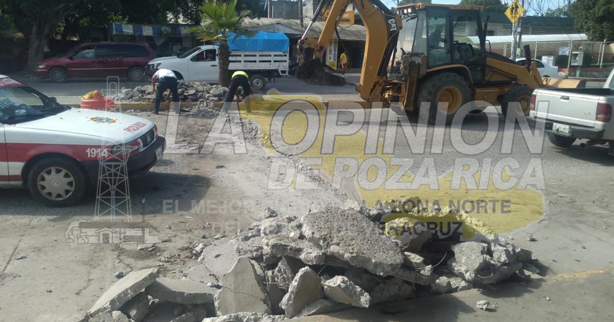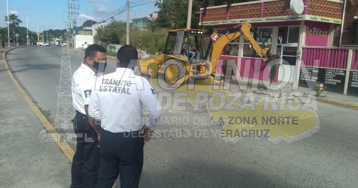Poza Rica, Ver.- Este lunes personal de la Delegación de Tránsito del Estado procedió al retiro de reductores de velocidad sobre el bulevar Central Poniente, en la colonia Petromex, justamente en inmediaciones de la escuela primaria Benito Juárez.