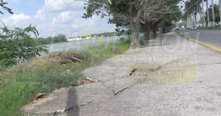 Tuxpan, Ver.- Los asentamientos y severas fracturas que presenta el pavimento hidráulico de aceras en el bulevar Maples Arce…