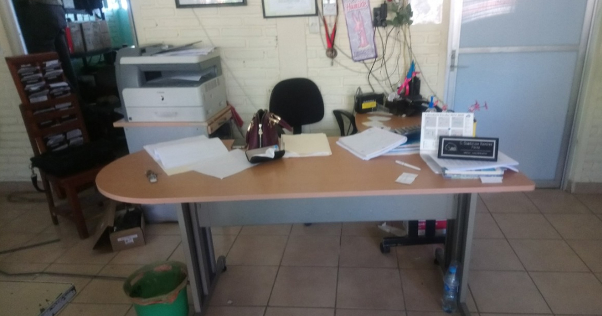 Cabe señalar que en la dirección se encontraron tres monitores, uno en el piso a la mitad del espacio, otro en la oficina de la subdirección y uno más en un escritorio, así como otros objetos que al parecer olvidaron o pretendían regresar por ellos.