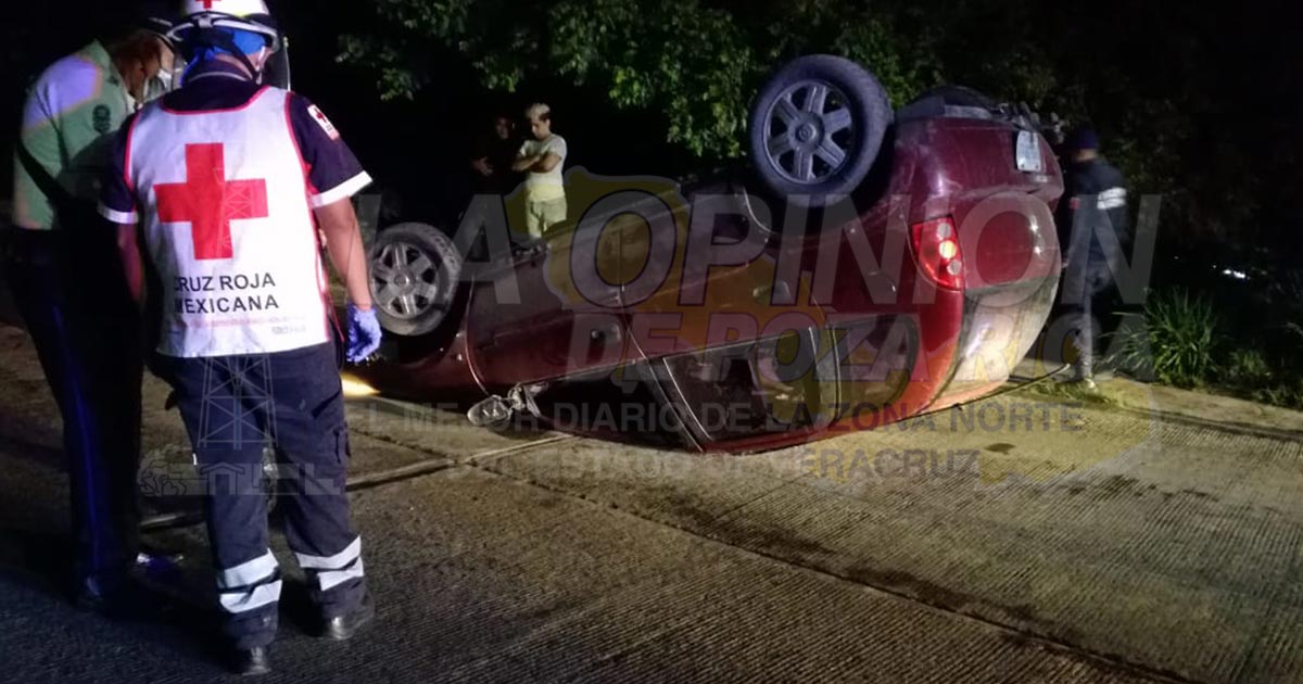Tuxpan, Ver.- Joven que aparentemente manejaba en estado de ebriedad volcó de forma aparatosa el automóvil que manejaba, pero por fortuna resultó ileso; autoridades de Tránsito Municipal tomaron conocimiento.