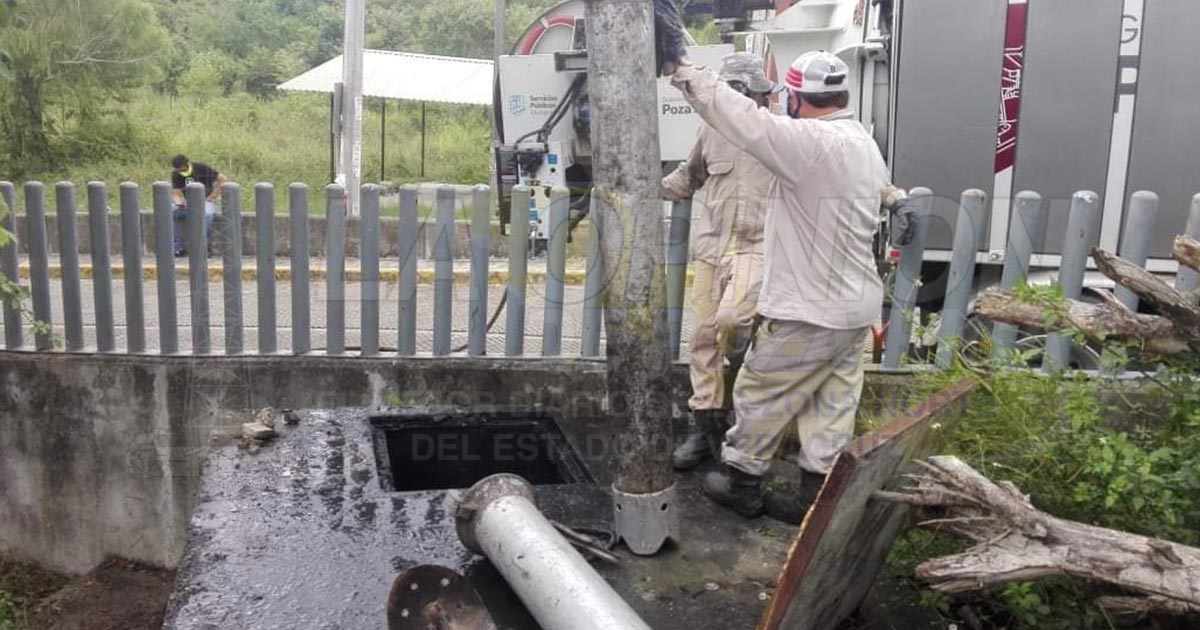 Poza Rica, Ver.- A petición del director del hospital del ISSSTE personal de agua potable y alcantarillado del ayuntamiento de Poza Rica llevó a cabo la limpieza del cárcamo de bombeo de agua debido a que presentaba una fuga.