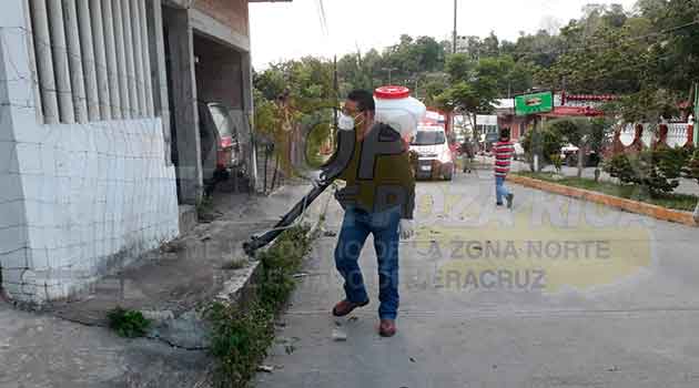 Papantla, Ver.- Elementos de protección realizaron la sanitización de calles y colonias en diferentes puntos de la ciudad, principalmente de las zonas denominadas de alto contagio.