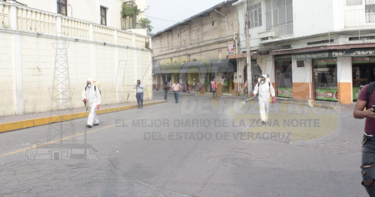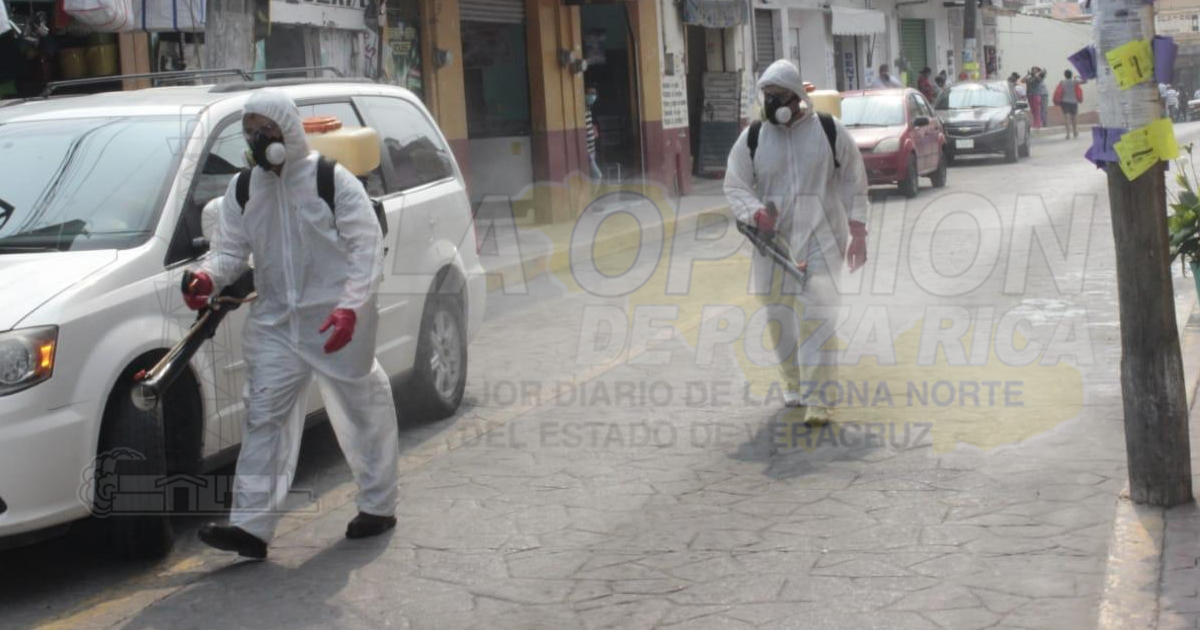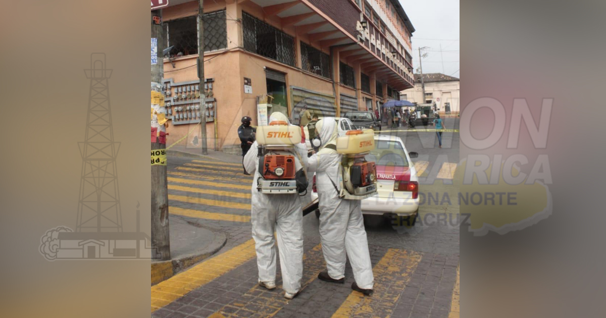 Papantla, Ver. – Está mañana inició la sanitizacion del primer cuadro de este pueblo mágico, mientras que las autoridades en los cercos cerrados piden a todas las personas el uso obligatorio de cubrebocas para poder ingresar.