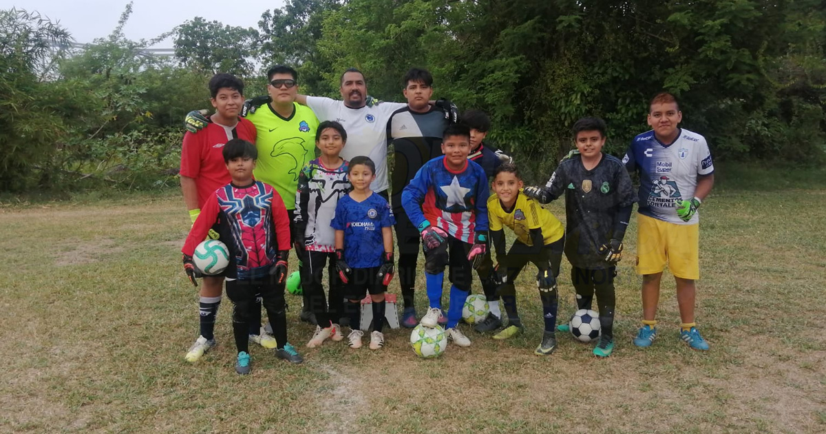 Además, en una esquina del campo un grupo entrena por separado, son los cancerberos de las distintas categorías. Bajo las indicaciones del experimentado Gabriel Osornio los porteros realizan su práctica, con entusiasmo y con mucha entrega, saben que en un partido mucho del resultado depende de su preparación.