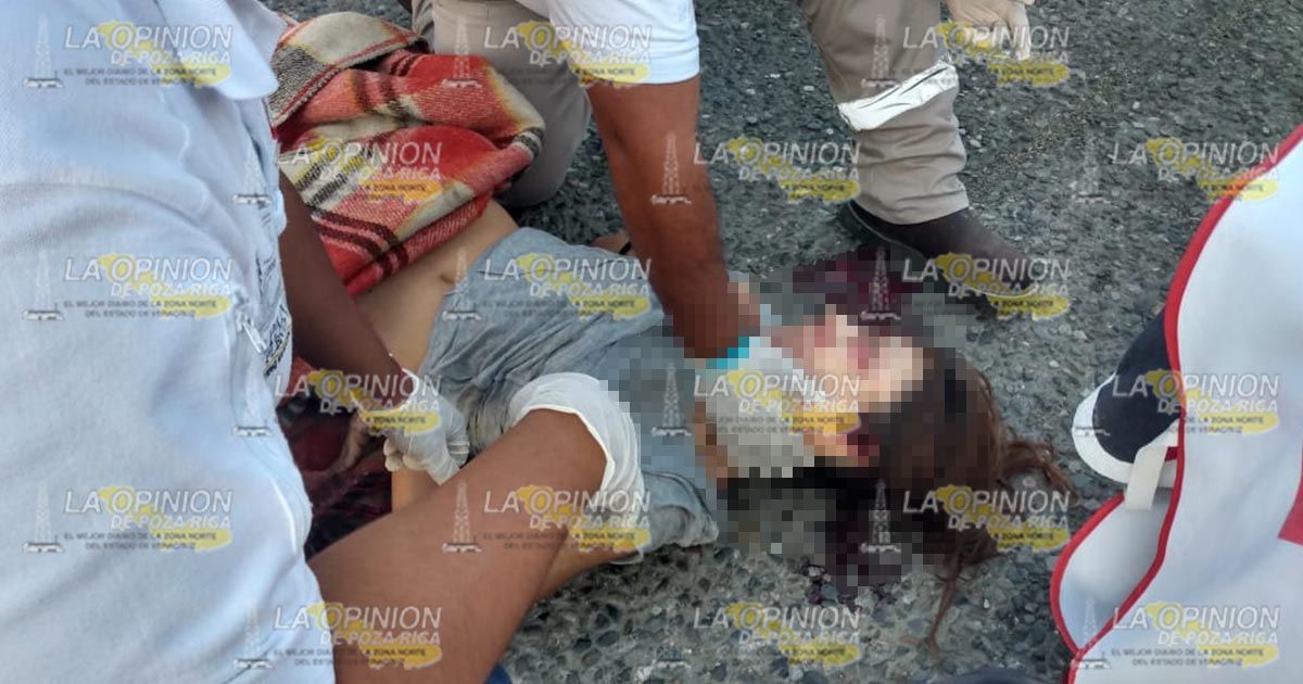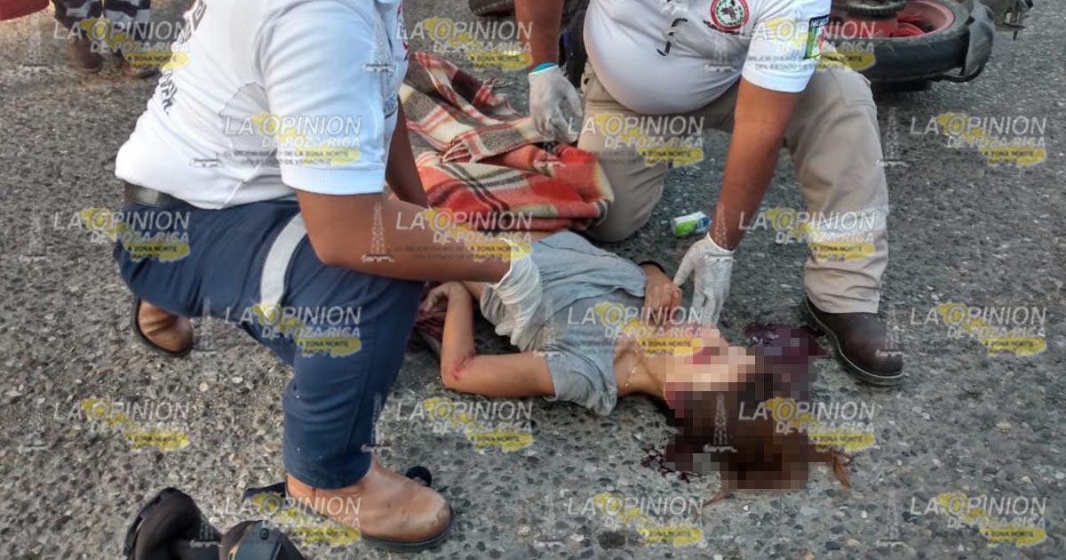Poza Rica, Ver.- Entre la vida y la muerte, se encuentra una persona del sexo femenino, al ser víctima de un accidente en motocicleta.