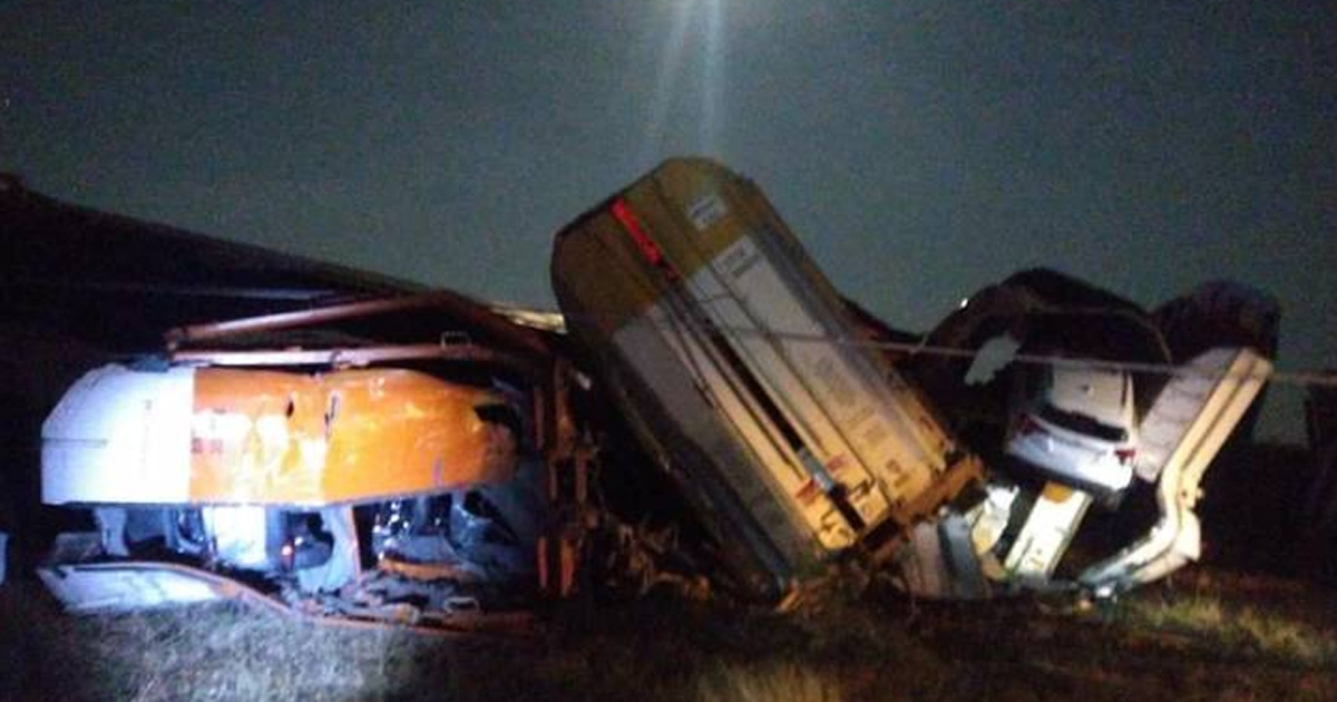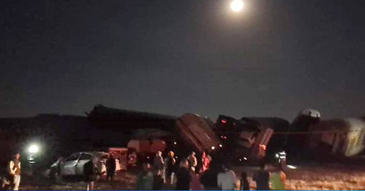 Silao, Gto. Más de 20 vagones que transportaban automóviles nuevos se descarrilaron de las vías del tren.