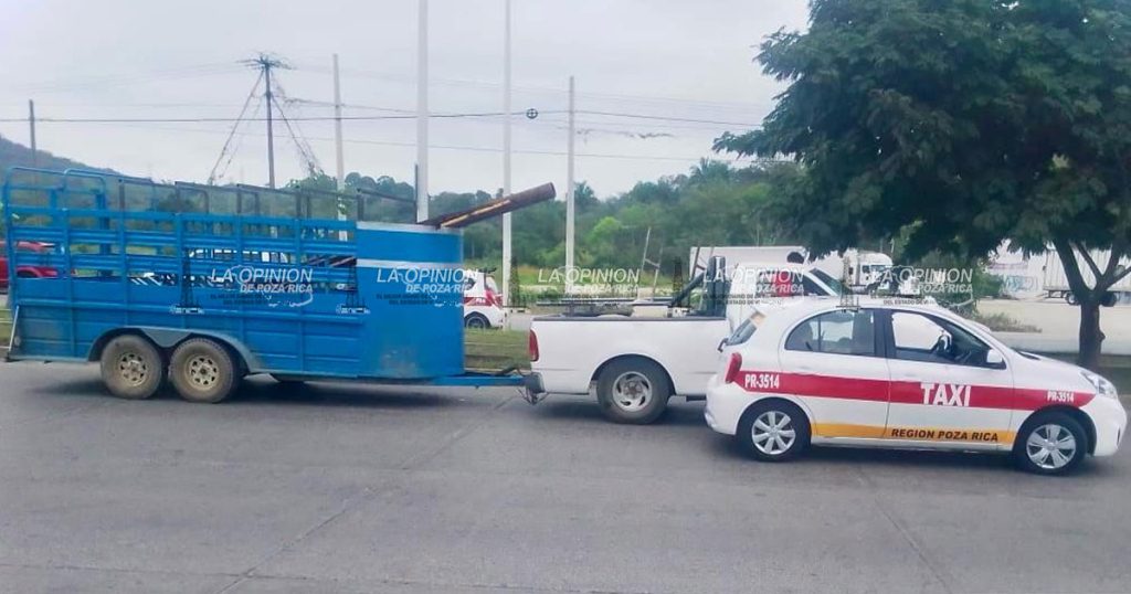 Poza Rica, Ver.- Un accidente automovilístico registrado sobre el bulevar Adolfo Ruiz Cortines generó caos vial la mañana de este sábado, cuando un taxi y una camioneta con remolque ganadero se vieron involucrados en una colisión.