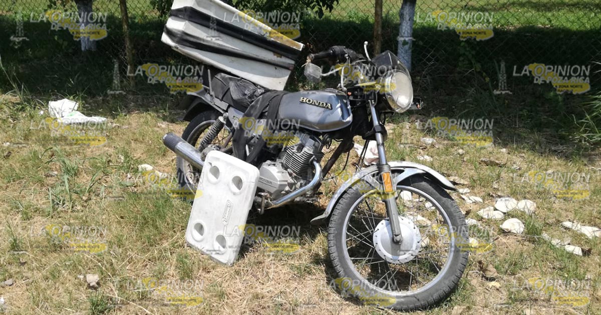 Dicho sujeto manejaba una motocicleta Honda-CGL125, color gris, con placas de circulación Y2GV8 del Estado, la cual resintió elevados daños materiales y el producto que comercializaba quedó tirado a orillas de la carpeta de rodamiento.